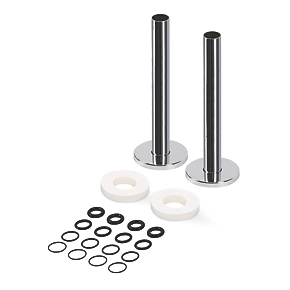 Covers the exit point of valves from the wall and into the back of a radiator. Collar sits around the pipes and sleeve hides copper pipes within. Sleeves are 18mm diameter (16.5mm internal) so will sleeve over 8, 10 or 15mm copper pipework.